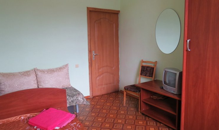 В номере: вешалка, зеркало, кровати односпальные, прикроватные тумбочки, тумба, шкаф, раскладушка на доп. место