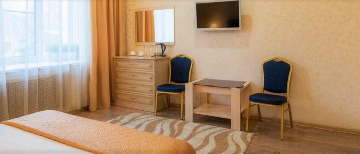 Также у нас есть номера с джакузи. И наш номерной фонд состоит из 11 светлых и просторных номеров, где вас ждет двуспальная большая кровать.